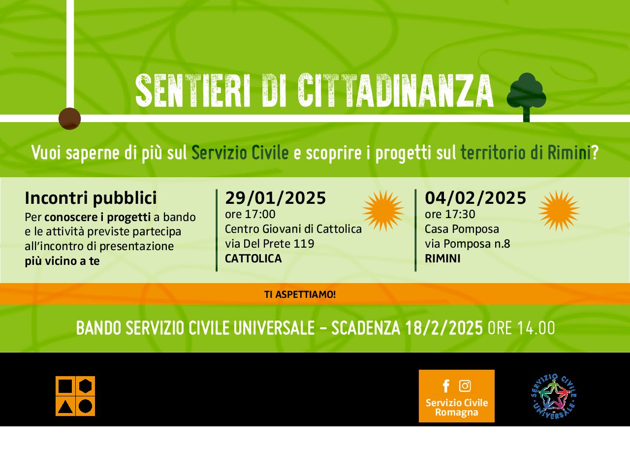 Vuoi saperne di più sul Servizio Civile e scoprire i progetti sul territorio di Rimini? Incontrare l3 ragazz3 che lo stanno svolgendo ora?